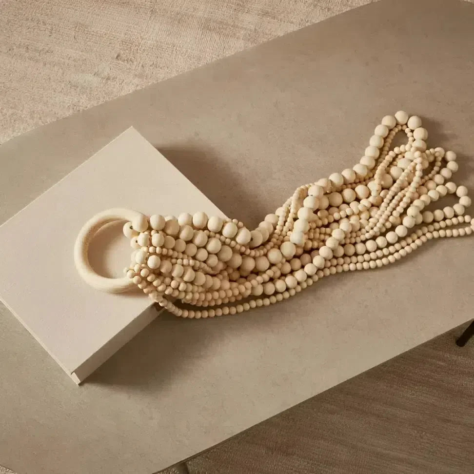 Decore estantes, armários, cabeceiras, mesas de centro e espaços corporativos com essa Escultura Colar em Madeira Marfim Mart.