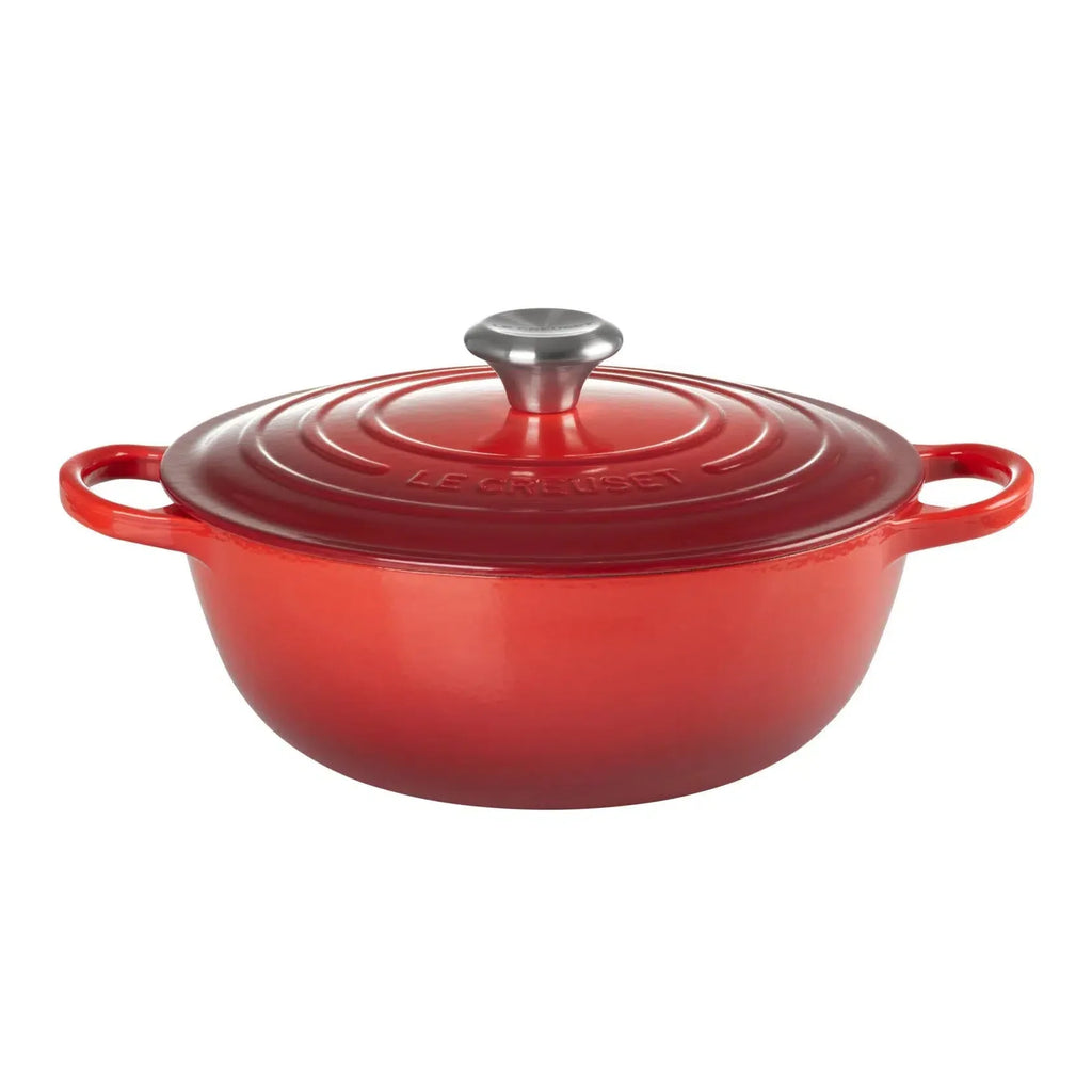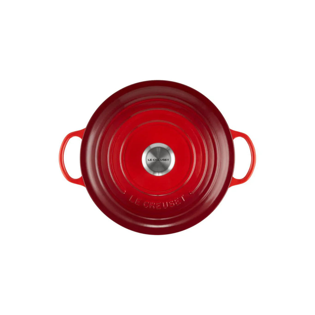 Seja preparando um ensopado de vegetais, caldo de galinha ou construindo lentamente uma rica base de creme de brócolis ou até uma sopa de queijo. A Panela Marmita em Ferro Fundido Signature Vermelha 26cm da Le Creuset é o produto ideal para pratos com cozimento lento.