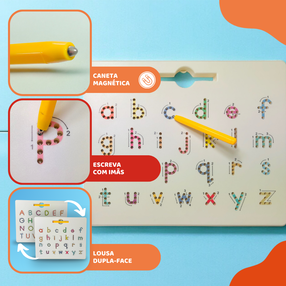 A MagForma Lousas Magnéticas - Maiúsculas e Minúsculas é uma excelente aliada no processo de alfabetização das crianças. Com base magnética de alta qualidade, ela permite que os pequenos explorem de forma lúdica as letras do alfabeto, diferenciando maiúsculas e minúsculas com facilidade. Ideal para trabalhar o reconhecimento das letras, formação de palavras e início da leitura, essa lousa estimula a consciência fonológica, a coordenação motora e o raciocínio, tornando o aprendizado mais leve e divertido.
