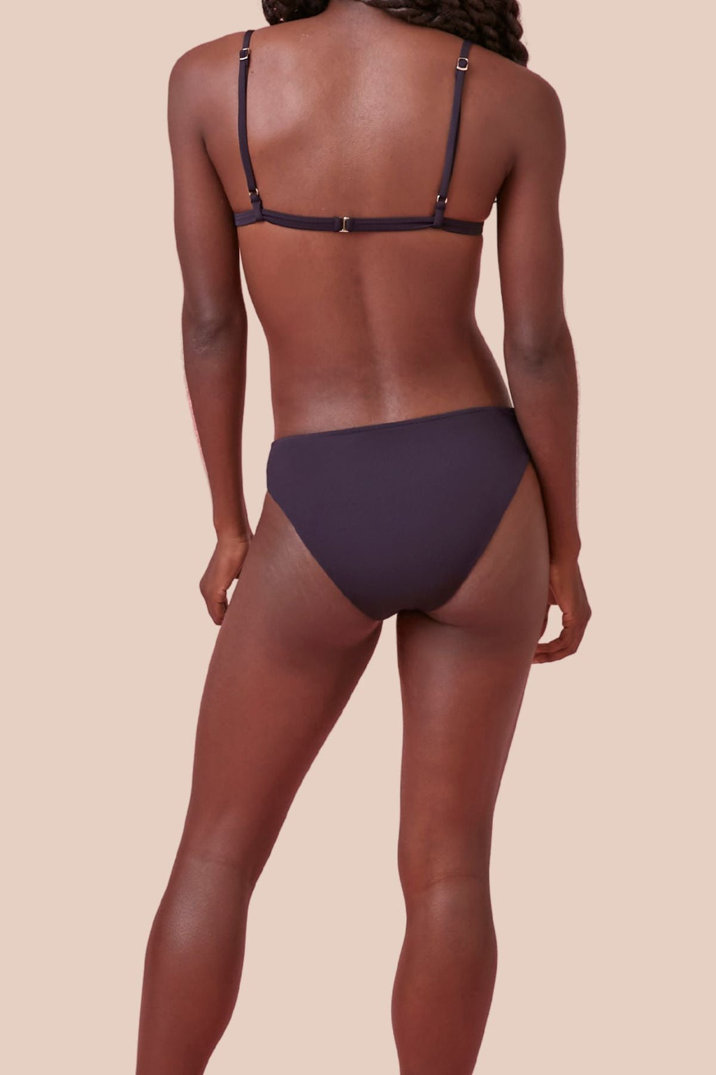 esse conjunto de biquíni conta com um top com formato triangular e uma parte de baixo modelo asa-delta com forro absorvente que absorve até 5 ml de sangue. além disso, ele tem: