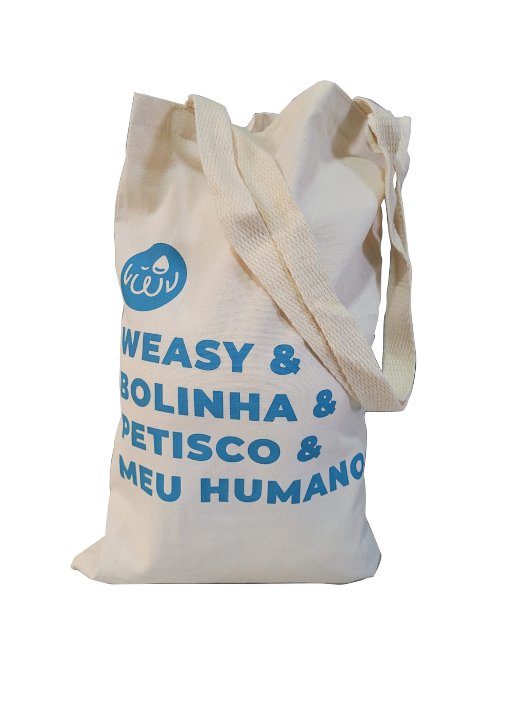 Linda Ecobag Weasy feita de algodão cru para passear com seu peludo. Modelo cão ou gato.