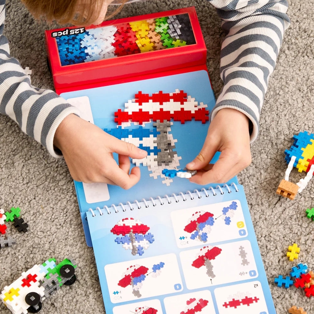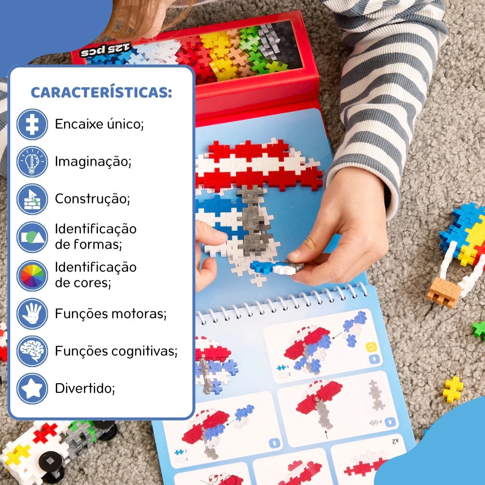 Explore o universo dos transportes com o PlusPlus Activity Pad 125pcs Transportes! Com peças coloridas e um livro de atividades, as crianças podem montar carros, aviões, trens e muito mais. Ideal para estimular a criatividade, a coordenação motora e o raciocínio lógico enquanto se divertem construindo diferentes meios de locomoção.