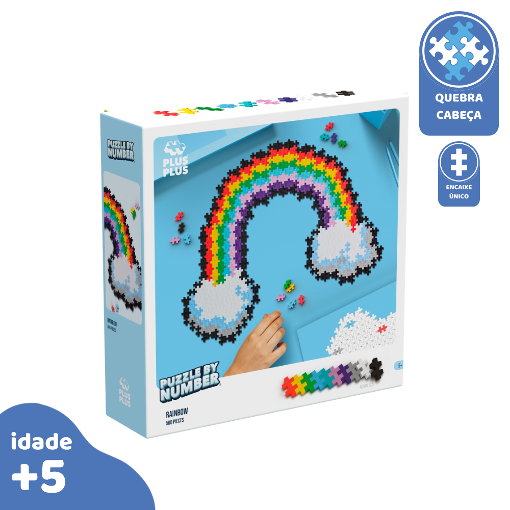 PlusPlus PBN Arco-íris é um convite colorido para a imaginação! Com 500 peças em tons vibrantes, este kit permite que as crianças montem um lindo arco-íris seguindo o modelo “Puzzle by Numbers” (PBN), que estimula o reconhecimento de cores, coordenação motora e atenção aos detalhes. Uma atividade lúdica e educativa, perfeita para momentos criativos em casa ou na escola.