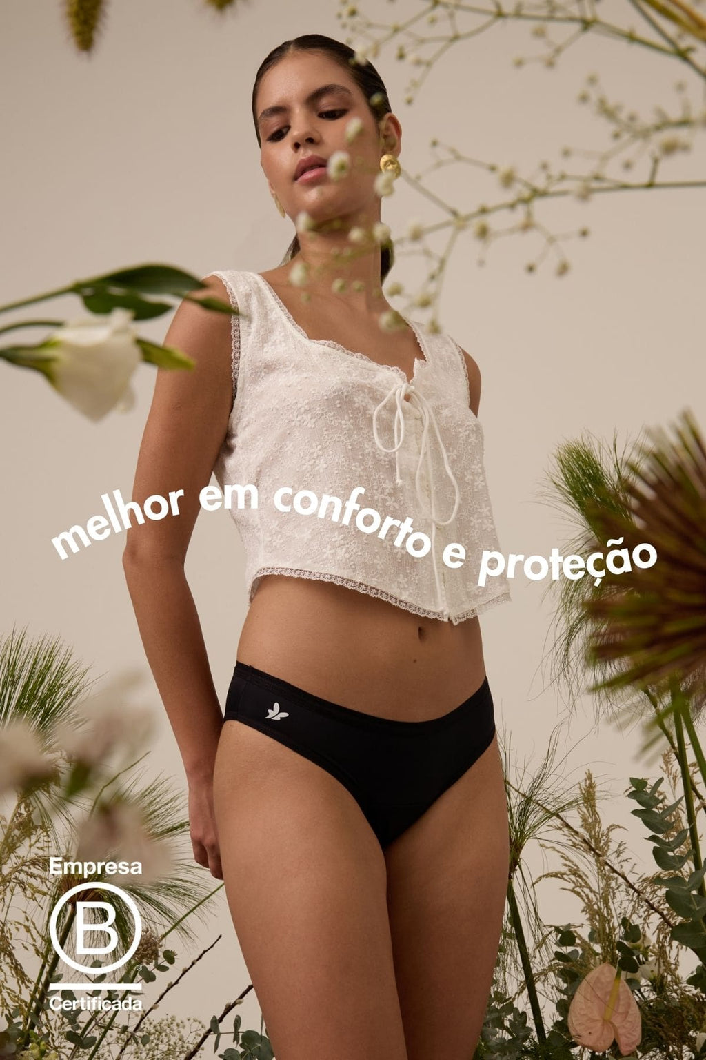 basiquinha e cheia de aconchego, a calcinha absorvente básica parece que foi feita para o dia a dia: a gente quase esquece que ela carrega uma super tecnologia de absorção para dias de fluxo moderado.