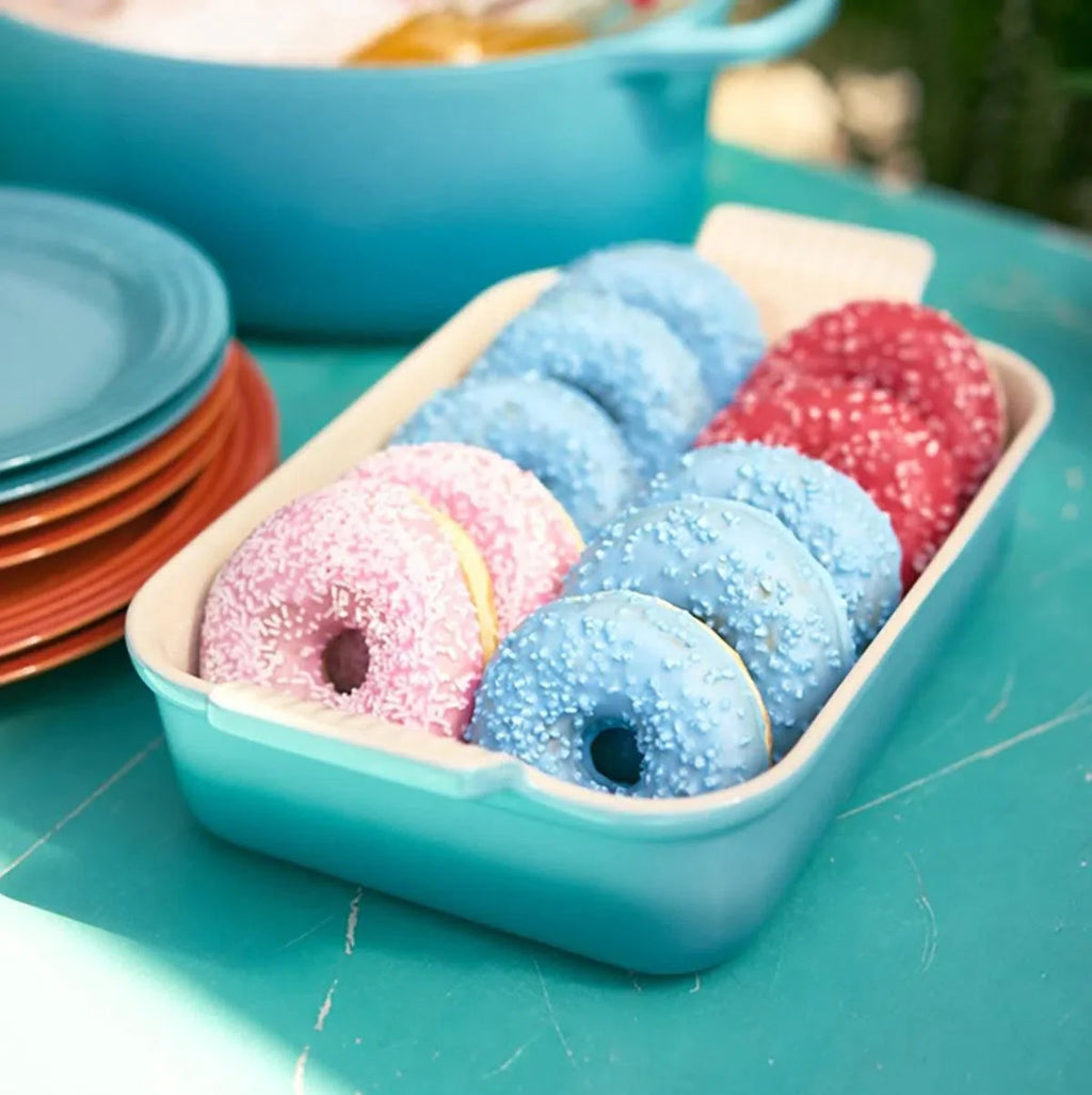 A Travessa Retangular em Cerâmica Heritage Azul Caribe 26cm da Le Creuset é uma peça essencial na sua cozinha que vai lindamente do forno à mesa. Ideal para tudo, desde assar sobremesas a assar vegetais, marinar carnes, armazenar sobras e muito mais, as paredes laterais profundas e a capacidade generosa oferecem amplo espaço para lazanhas com molho borbulhantes em camadas. Elaboradas com cerâmica premium para garantir que os alimentos sejam preparados com perfeição, os pratos apresentam um esmalte colorido que é praticamente antiaderente para facilitar a limpeza.